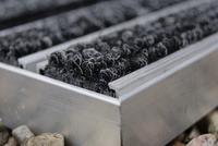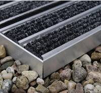 Duża wytrzymałość na obciążenia dynamiczne spowodowana zastosowaniem profili o łukowym sklepieniu. Wycieraczka doskonale sprawdzi się przed wejścia z funkcja wwożenia i wywożenia produktów na wózkach transportowych. Wycieraczka z filcu o grubości 7 mm w wersji niepalnej klasy ogniowej w całkowitej wysokości 15mm zatrzymuję pomiędzy profilami brud i wodę w zwiększonej ilości poprzez uwypukloną powierzchnię filcu.