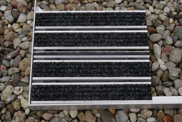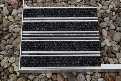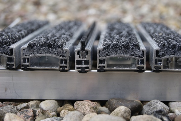 Profile aluminiowe z filcem i wzmocnioną szczotką liniową w dowolnych proporcjach (filc – szczotka 1:1, 2:1, 3:1). Zatrzymuje brud w przestrzeniach pomiędzy profilami poprzez aktywne działanie szczotki liniowej usytuowanej powyżej płaszczyzny filcu. Zalecana tylko do wewnętrznych obszarów wejściowych.