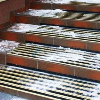 - Mata schodowa w formie nakładek aluminiowych ze szczotkami pełni funkcję antypoślizgową oraz czyszczącą (działa jak wycieraczka). Ażurowa konstrukcja maty zapewnia odprowadzanie wody i brudu. Nakładki zmniejszają ryzyko poślizgnięcia na stopniach.