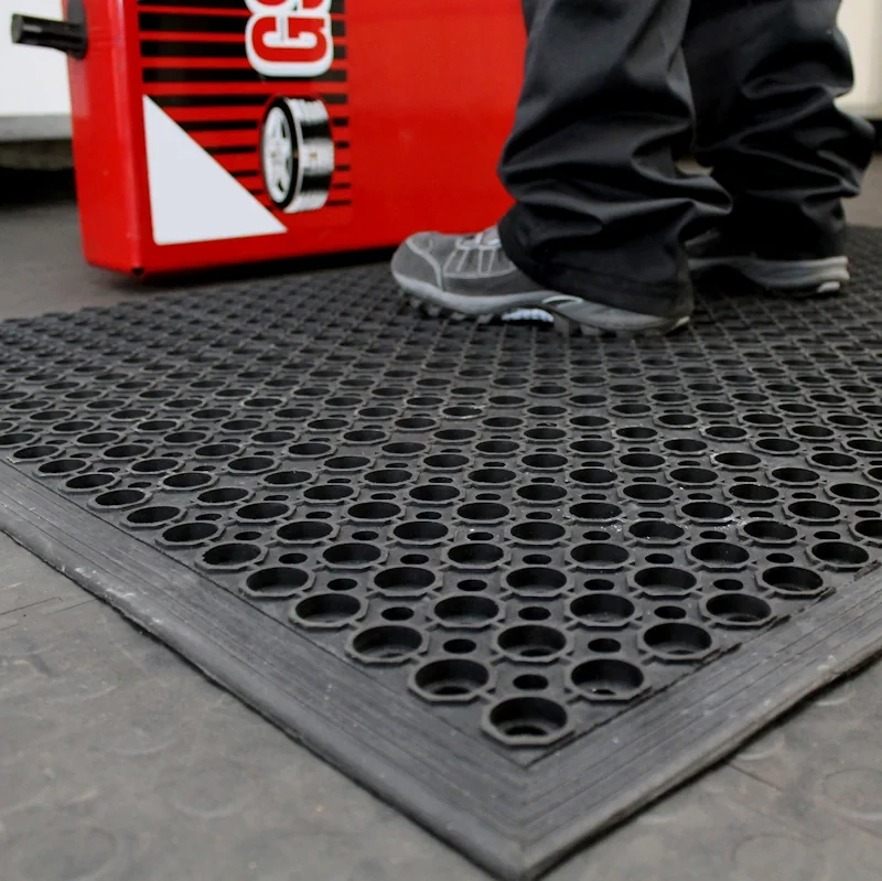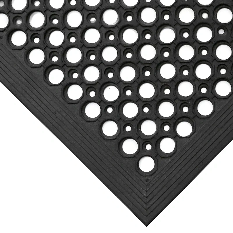 • Mata gumowa ażurowa z krawędziami najazdowymi. Mata nadaje się jako wycieraczka gumowa oraz mata ergonomiczna do pracy stojącej.
