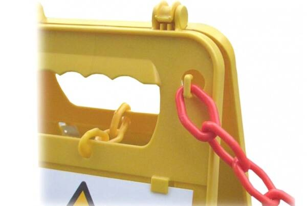- uchwyty na łańcuszek lub taśmę ostrzegawczą